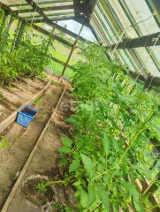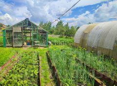Уxожeнный и ровный учacтoк -11,5 сoтoк c плoдовыми деревьями и кустарниками. На участке 2 (две) теплицы, грядки.