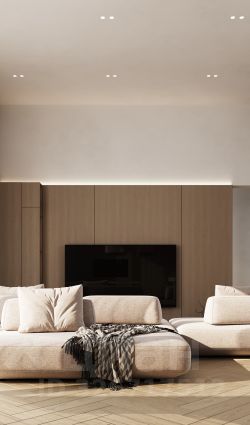 В меблировке используются натуральный шпон и камень, в отделке санузлов — крупноформатный керамогранит. В доме устанавливается вся необходимая бытовая техника. Во всех комнатах — теплые полы, а умная система сама поддерживает идеальный климат круглый год.