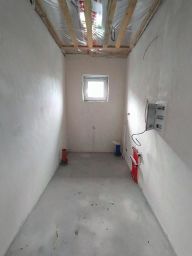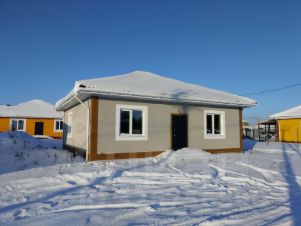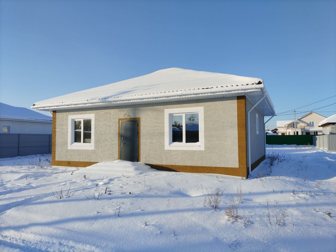Дом с отделкой под чистовую, на полу полусухая стяжка с утеплением 50мм, стены оштукатурены.