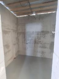 Дом с отделкой под чистовую, на полу полусухая стяжка с утеплением 50мм, стены оштукатурены.