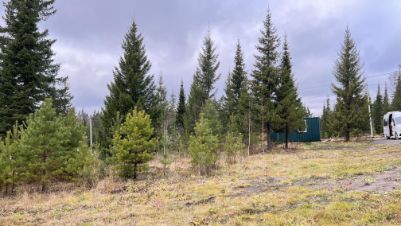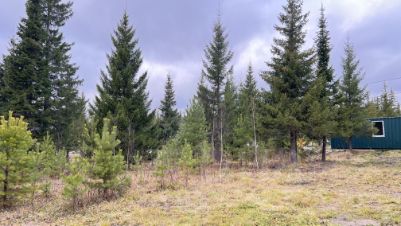 На участке взрослые ели и пихты, а также молодые сосны и березы.Достаточно света, чтоб выращивать плодовые деревья. Достаточно тени, чтобы отдыхать от полуденной жары.Участок подключён к электричеству - 15 кВт., также есть скважина с питьевой водой (производительность 2 куба в час) и установлена новая бытовка 2,4м*6м (высота 2,9м).
