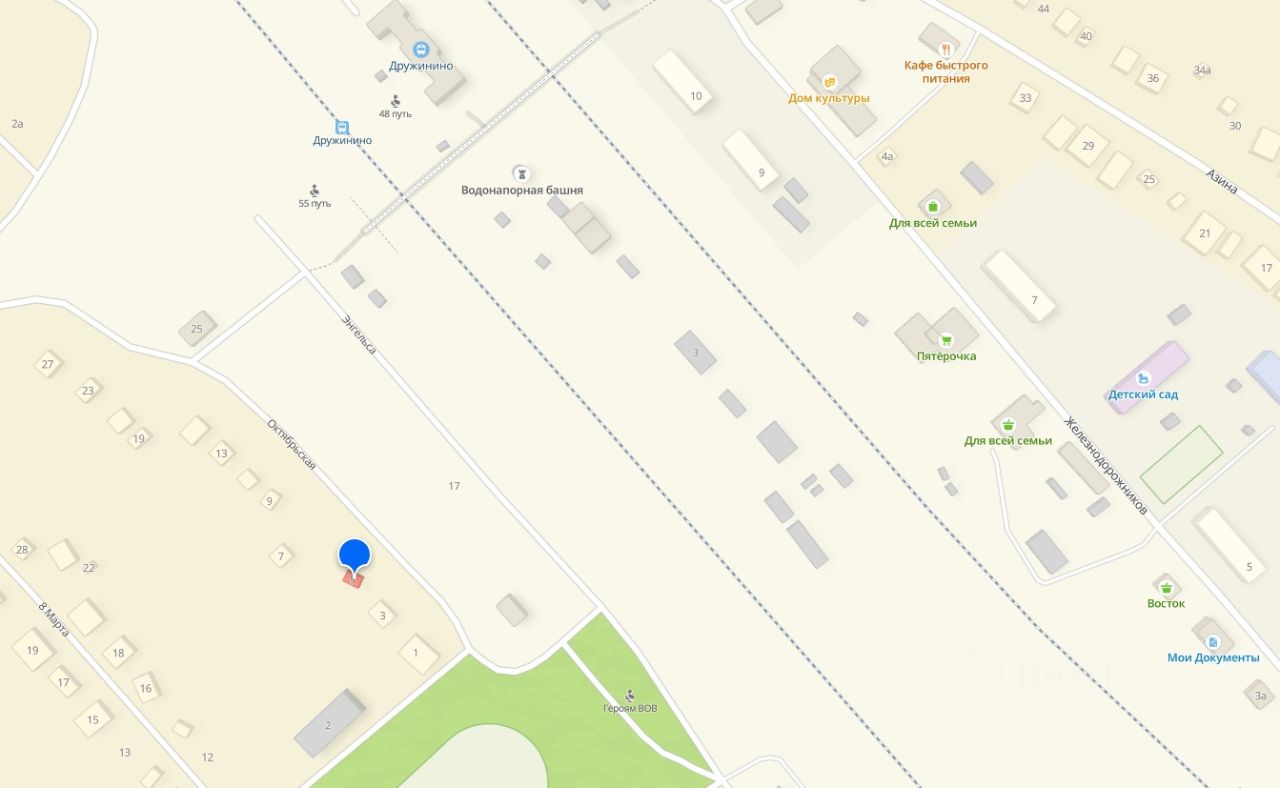 Рядом есть магазины, железнодорожный вокзал, парк культуры и отдыха, с детской площадкой, площадкой для спорта и футбольным полем, храм и школа.