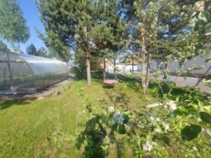 Кроме дома, на земельном участке площадью без малого 19 соток построена душевная банька, есть теплица, растут сосны и ёлочки.