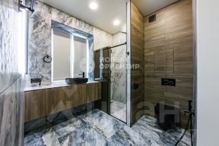 Санузлы отделаны керамогранитом. Теплый пол. Душевые кабины из закаленного стекла.