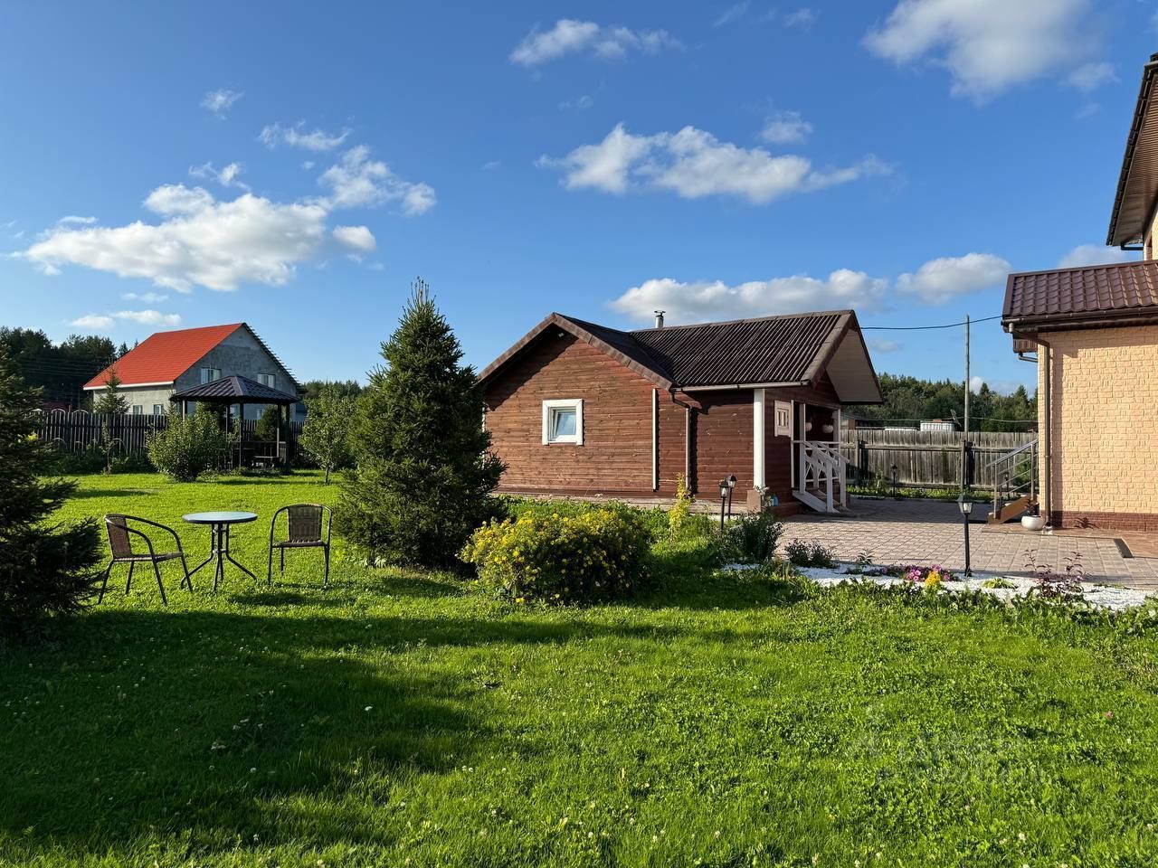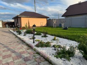 Участок ровный, квадратный, тротуарная плитка, газон, ландшафтный дизайн. Рядом сосновый лес, большой пруд. Хорошие соседи. Асфальтовая дорога, в 3 минутах езды большая новая школа, детский сад. До Екатеринбурга 55 км.