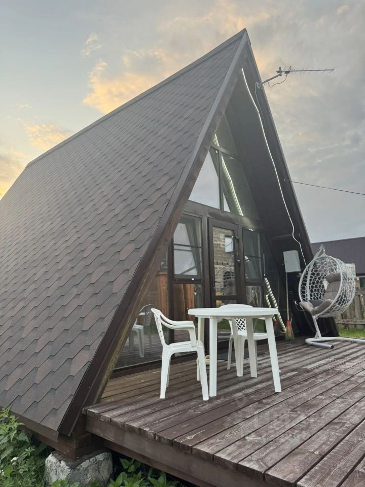Продам современную дачу для прекрасного отдыха в экологически-чистом месте - коллективный сад "Летний Стан" (юж часть г. Полевского, от г. Екатеринбург 60 км), вдали от производств и грязного воздуха с треугольным домом А-фрейм в стиле Шале.