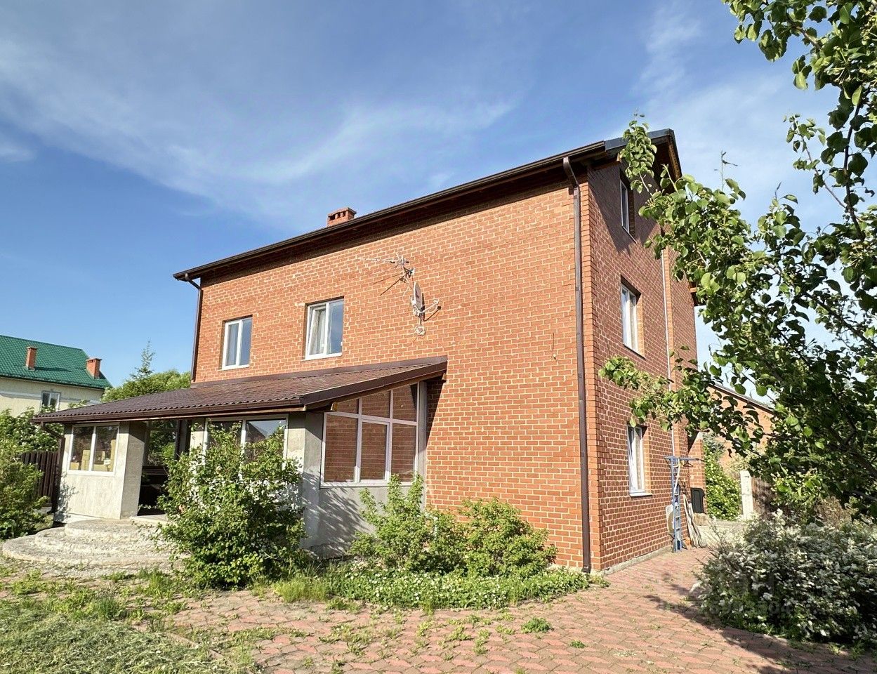 Коттедж построен для себя из качественных материалов, стены - твин блок, облицовочный кирпич, электричество, газ, вода - заведены в дом под землёй.