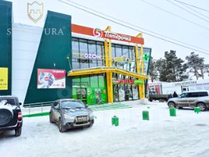 В 5 минутах езды на въезде в пос. Горный щит расположен торговый молл "Колхозный двор", на территории которого имеются супермаркет "Пятёрочка" и множество различных магазинов "от а до я", предприятия общепита, салон цветов.