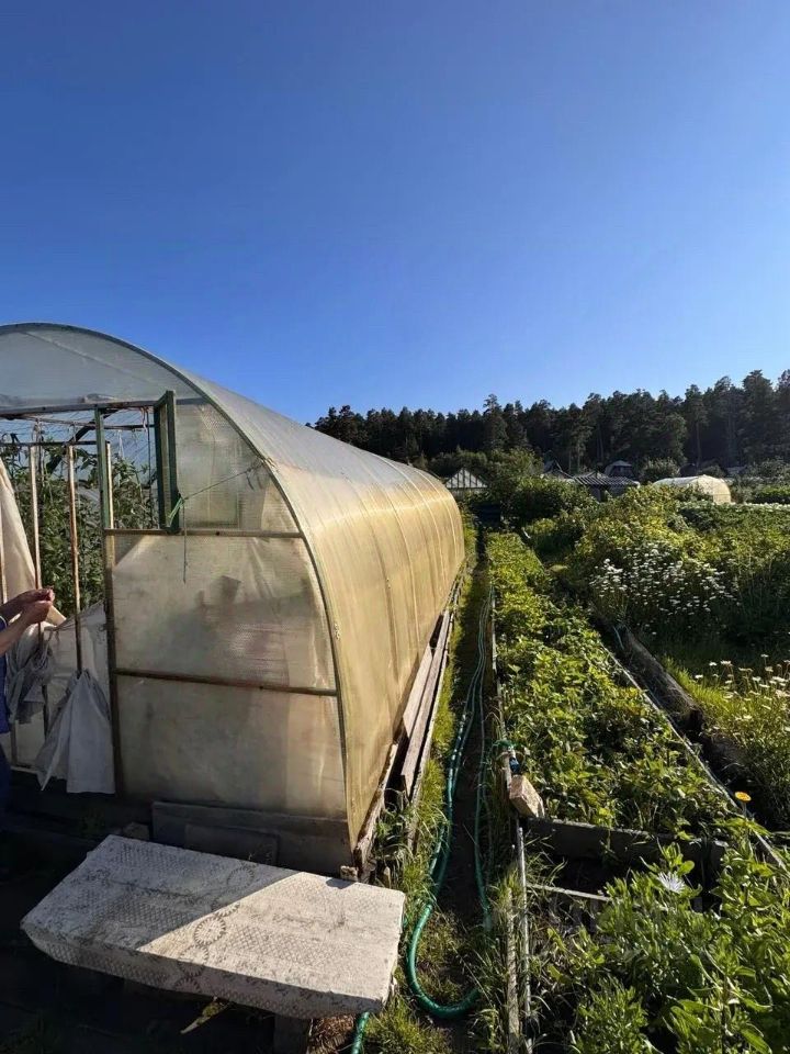 На участке проведен летний водопровод, установлены 2 теплицы 3*8 м, 2*3 м.
