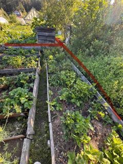 На участке посажены ягоды: (клубника сортовая, малина, смородина, жимолость, крыжовник), также есть яблоня.