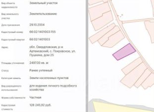 Кадастровый номер участка — 66:02:1401003:155.