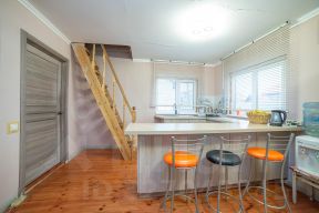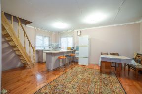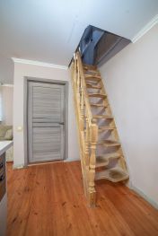 На 1 этаже прихожая отделена от большой комнаты, совмещенной с кухней.