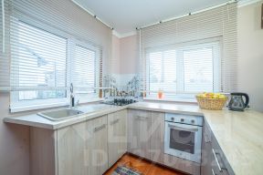 Кухонный гарнитур, встроенные электроплита, духовка и микроволновая печь.