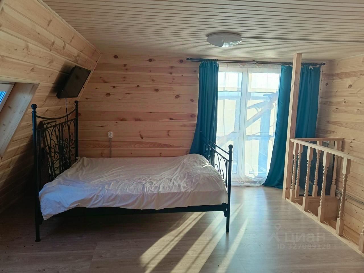 На первом этаже расположена кухня с новым гарнитуром, прихожая и баня. На втором этаже расположена большая спальня с большими окнами и балконной дверью. Комната очень светлая и уютная.