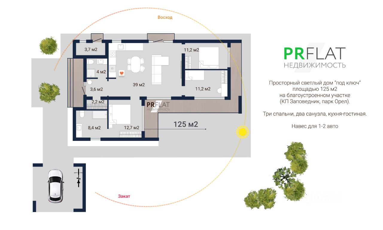 Шикарное предложение, звоните! В продаже — эксклюзивный дом, полностью готовый к жизни, площадью 125 м² в престижном коттеджном поселке Заповедник, парк Орел.