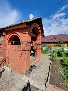 Дом на ленточном фундаменте из бревна, обложен кирпичом, что обеспечивает надежность и тепло. Облицовка - евровагонка.
