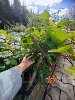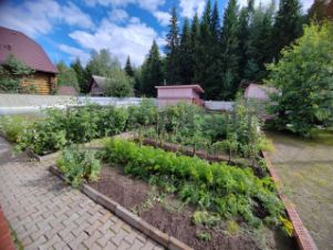Ухоженный и разработанный с множеством плодово-ягодных растений, включая редкие - такие как: виноград. Множество пряных растений: бергамот, люфант, пустырник, эхинацея, и много других.