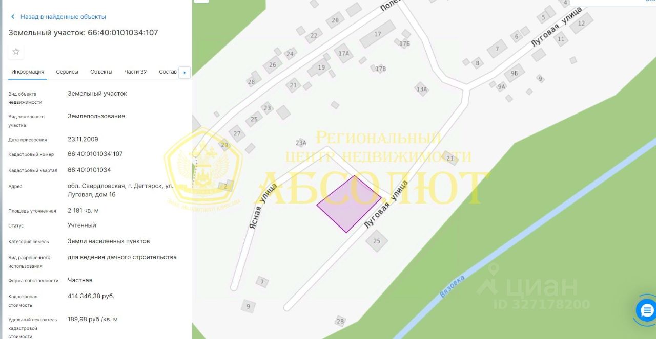 Продам земельный участок в Дегтярске (40 км. от Екатеринбурга по Полевскому или Ново-московскому тракту) для строительства жилого дома по ул. Луговая, размером 21,81 сотки, кадастровый номер 66:40:0101034:107, участок ровный, правильной прямоугольной формы, место сухое, солнечное, рядом построены новые современные кирпичные дома, удобный подъезд к участку. Вдоль участка идет газопровод и линия электричества, есть возможность подключения. Рядом красивый лес с грибами и ягодами. Недалеко есть водоем.