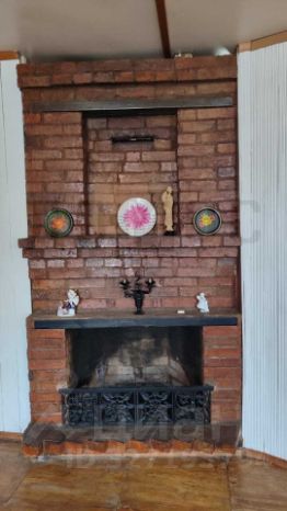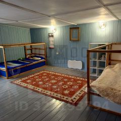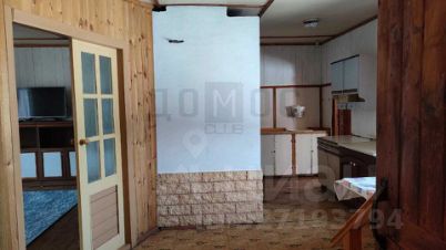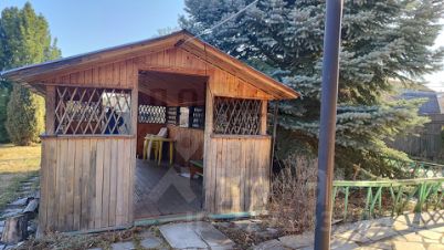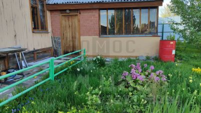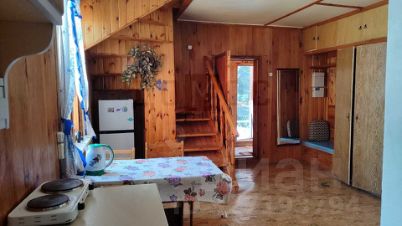На участке расположен дом+ баня+ гараж и кладовые, все под одной крышей. Дом деревянный с печкой и камином. В доме два этажа, три жилых комнаты. Дом интересный, можно использовать как для сезонного проживания, или как гостевой.