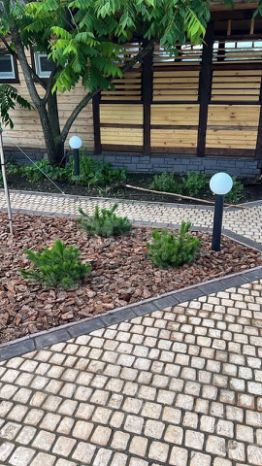 - Зона отдыха: красивый ландшафт, уличный бассейн, туи, кедры, хвойные композиции, цветы, лужайки (с автополивом).