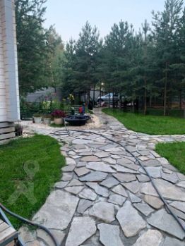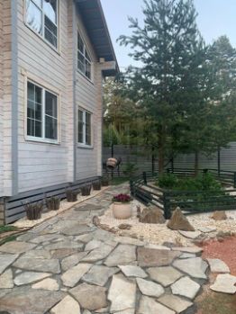 * Ландшафт: Ровный газон, свои сосны, дорожки из натурального плитняка;