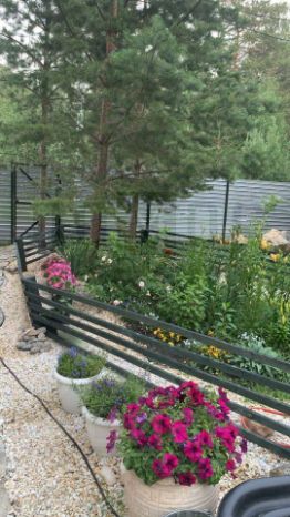 * Забор из евроштакетника (цвет Ral 7004) - стильно и аккуратно;