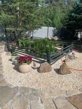 * Постройки: Просторная терраса у входа, хозблок, дровница, вольер, а также СУХОЙ сруб под баню 3х6 под крышей;