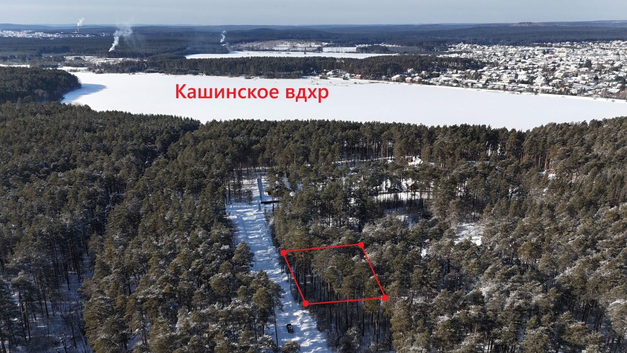 Участок расположен в тихой части поселка, в 200 метрах от Кашинского водохранилища, на высокой местности с вековыми соснами.