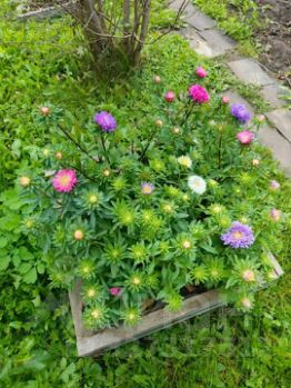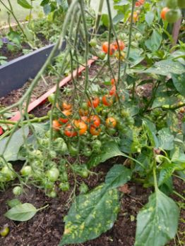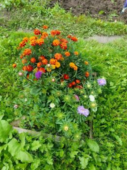 Фруктами и ягодами: Яблони (4 шт.), слива, алыча, вишня, черноплодная рябина, смородина трех видов (черная, красная, белая), калина, рябина.