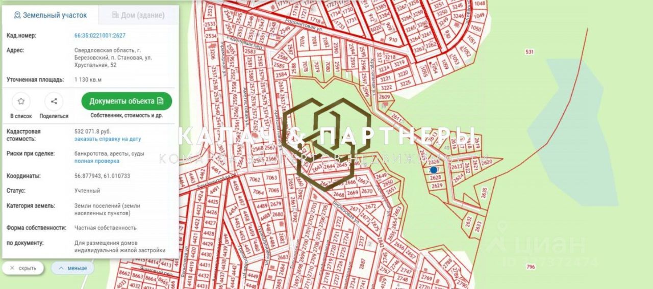 Арт. 129946209 Продаётся участок Березовский р-н, п. Становая, ул. Хрустальная. В 30 км от