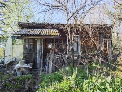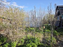 Проведено межевание, площадь по документам 5,7 соток, по факту около 10 за счёт того, что участок граничит с лесом. На основной части участка плодовые деревья и кустарники, сосна, дуб. На дополнительной площади организован огород. По всему периметру можно установить забор. На участке 2 домика, для проживания непригодных. 2х-этажный дом внутри полностью пустой и представляет собой коробку под крышей. Маленький домик подойдёт для хранения инвентаря.