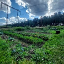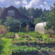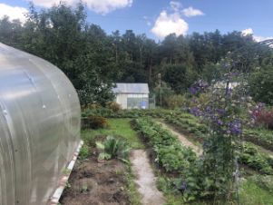 Напротив участка, за забором сада разработан участок для посадки картофеля, капусты, кабачков и моркови.
