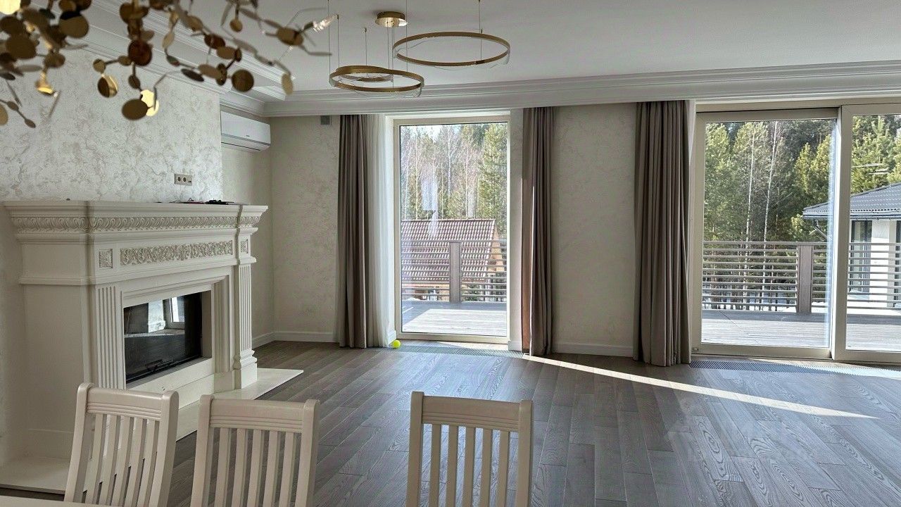 На шикарном участке 50 соток с хвойными деревьями и собственным выходом в лес расположен не менее шикарный и просторный дом.