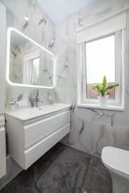 Водоснабжение: собственная скважина 82 м (паспорт, испытания). Двухступенчатая фильтрация: система грубой очистки (3 фильтра) + отдельная линия для питьевой воды (3 фильтра). Отопление и ГВС: электрокотёл 12 кВт, бойлер 150 литров, тёплые полы по всему дому на антифризе — 10 независимых контуров. Система не замерзнет даже при отключении электричества. Газ подведён к кольцу на участке — можно подключить газовое оборудование. Канализация: выгребная яма из бетонных колец глубиной 3 м, не замерзает зимой.