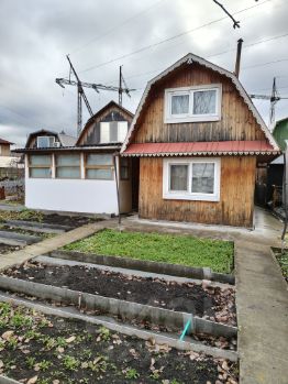 Участок 4 сотки, правильной прямоугольной формы. Дом из бруса, под одной крышей баня и дом. На первом этаже комната, второй этаж полностью жилой. Для сезонного проживания с печным отоплением. Туалет на улице, септика нет.