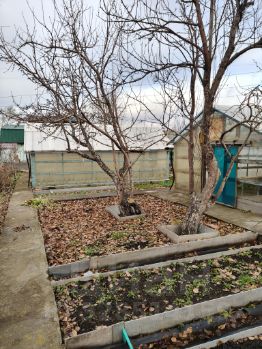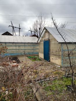 На участке: две капитальные теплицы, закрытая беседка (проведен свет), мастерская, кладовая, плодовые деревья и кустарники: яблони, малина, ирга, жимолость, облепиха, калина, черноплодная рябина, смородина, крыжовник, клубника. Есть скважина, бак, проведены трубы по участку для полива. В СНТ есть общая скважина.