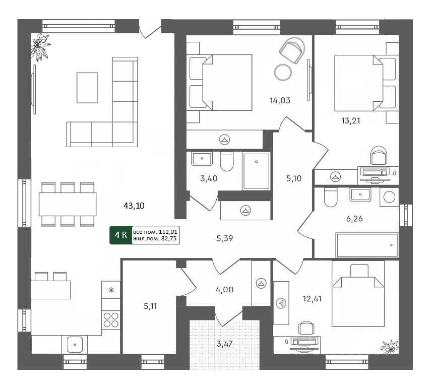 Дом: 1-этажный, площадь 112 м2 (внутри теплого контура),три спальни плюс огромная кухня-гостиная, котельная, два санузла, предусмотрен выход на террасу. Окна в пол с видом на лесную часть участка. Профиль окон ПВХ. 2-камерный с/пакет.
