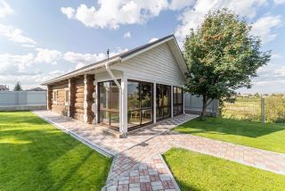 На участке срублена баня 80 кв.м. из крупного кругляка лиственницы.