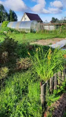 Участок большой ровный, есть плодовые деревья, ягодные кусты.