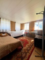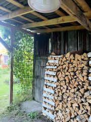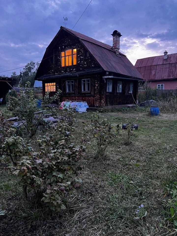 + дом: двухэтажный, из бруса, на каменном фундаменте; площадь ~60 м²; есть закрытая веранда; отопление печное;