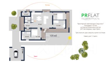Площадь — 125 м², высота потолков — 3 метра.