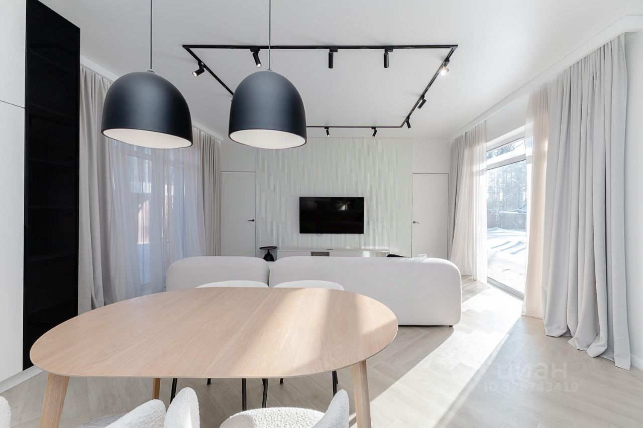 Вся меблировка остается новому владельцу. В доме установлена необходимая бытовая техника (посудомойка, варочная поверхность, холодильник, стиральная машина, микроволновка, вытяжка, измельчитель). Во всех комнатах — теплые полы, а умная система сама поддерживает идеальный климат круглый год.