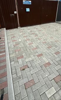 Перед домом выложена парковка, грязи нет и красиво выглядит