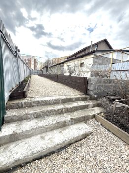 По периметру забор. Двор полностью ваш, закрытый. Отсыпан красивым желтым мелким щебнем, специально завозили несколько машин