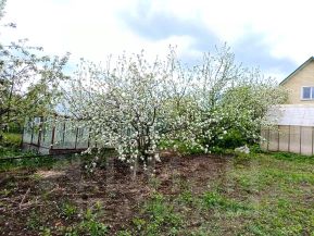 Участок ухожен, есть теплица длиной 7 метров. Растут плодовые деревья (яблоки, груши) всего 11 штук, настоящий фруктовый сад. Также имеются ягодные кустарники и другие растения.