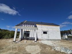 - Коробка под крышей, окна, двери, скважина (уже заведена в дом), теплые полы по 1 этажу (сделана разводка)