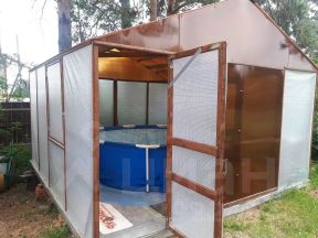 На участке расположены: баня 22 кв. м. (отличная парилка с новой печью), сарай, павильон с бассейном, теплица 3x8, помещения для выращивания и выгула птицы, место для барбекю, летний душ, по участку проходит летний водопровод. Участок зеленый, т.к. есть хвойные деревья, а также большое количество садовых плодоносящих деревьев и кустарников: груши, яблони, вишня, малина, жимолость, крыжовник и т.д. Есть место не только для выращивания овощей и фруктов, но для отдыха всей семьи.