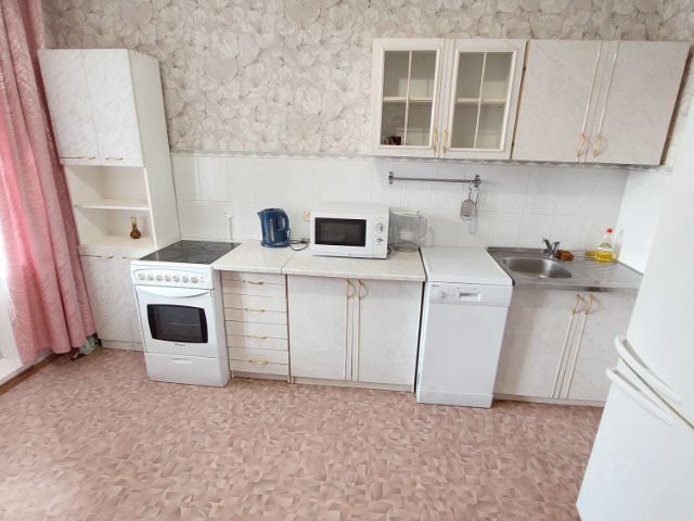 В квартире есть всё необходимое для удобного проживания. Мебель: большой раскладной диван, комод, компьютерный стол, тумба,полка настенная, журнальный столик. Кухня: кухонный гарнитур, стол,стулья, табуреты. В прихожей: шкаф для одежды, комод, напольное зеркало, две настенные вешалки,пуф, обувница. Бытовая техника: холодильник, электроплита с духовым шкафом, микроволновка, электрочайник, стиральная машина. Вся техника новая. Есть необходимая посуда.