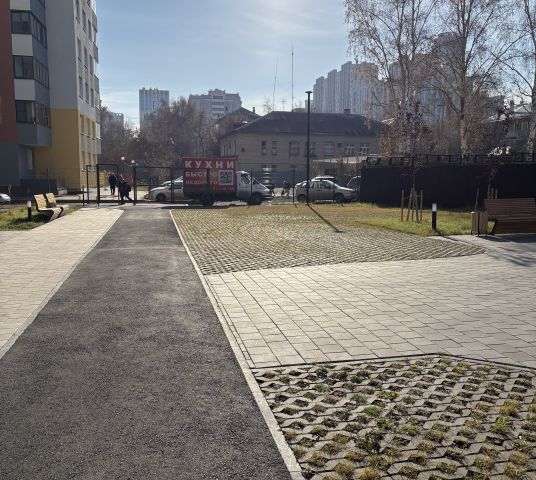 Парковка во дворе и на улице, зеленая зона, детская площадка и водоробот.