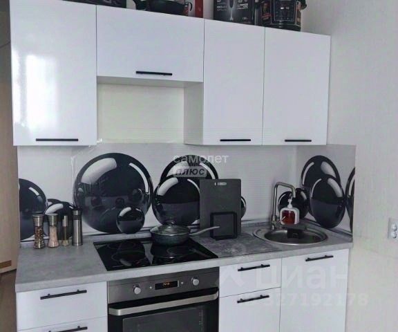 В кухне-гостиной: кухонный гарнитур с варочной панелью, духовым шкафом, посудомоечной машиной, обеденная зона, большой раскладной диван (три спальных места), телевизор, кондиционер.